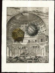 Tympanum •Colored aquatint etching• 18″ x 24″• Edition of 10 • 2023